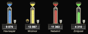 Žlutá síla se ovšem nedá zapřít, a tak bodovací hodiny jasně ukazovaly převahu Mrzimoru, který překročil hranici 13 tisíc bodů. Nebelvír má ovšem jen o zhruba 2 500 bodů méně, což je rozdíl, který se dá pohodlně dohnat. Šanci má určitě stále i Havraspár, který na vedoucí jezevce ztrácí necelé 4 000 bodů.
