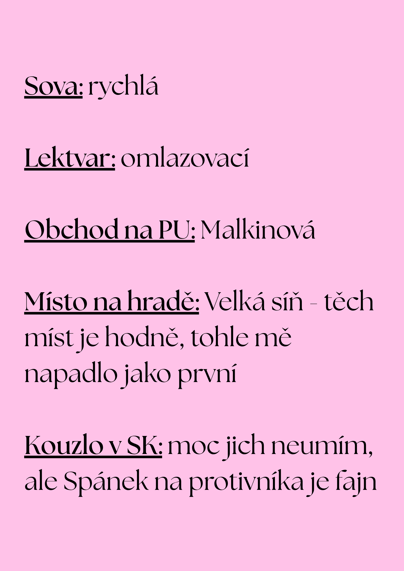 Denní věštec: Ano, nejhorší je, když jsou to třeba spolužáci starší než ty, co? směje se  Máš za sebou víc jak půl roku plnohodnotné hradní dospělosti. Jak to celkově hodnotíš dnes? Co ti třeba sedí víc na fialovém hradním působení a co ti víc vyhovovalo jako studentce?