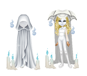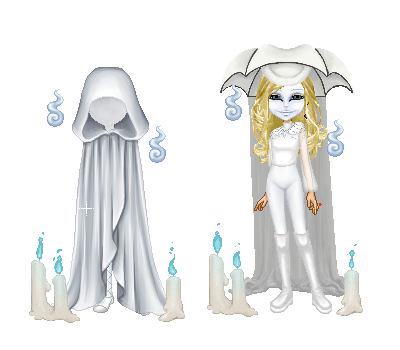 Sněhobílý maskovací plášť, který ve správné kombinaci, domnívám se, že ve spojení s lektvarem neviditelnosti, dokáže působit, že plášť se vznáší ve vzduchu, aniž by jej měl někdo na sobě oblečený. O tento dojem se postarala Mioness, které v outfitech často nechybí hravost. Tentokrát díky efektu vidíme velmi praktickou ukázku. A kdyby bylo třeba přidat ještě více tajemna, jsou zde levitující dušičky a právě ono podsvětlí, které v tmavých chodbách udělá své.