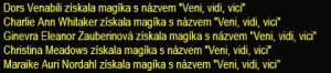 I přes převahu střeleckých úrovní na straně Jitřních jednorožců (71 vůči 66) ukořistili první camrál MEMEspektoři a Nicolette Marique Leroy dala gól skutečně jako „nic“. Charlie si vybrala smolný den v bráně a za zády jí skončily všechny 4 střely. Její kolejní ředitelka si vystřílela hattrick.