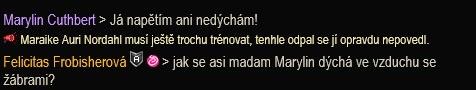 Maraike Auri Nordahl: Ahoj! V Jednorožcích jsem moc spokojená, máme tam skvělou skvadru a příjemnou atmosféru. Přístup „na pohodu“ zatím funguje parádně, akorát po prvním zápase měl zbytek týmu objednávku, že prý hlavně ať to dneska není na dlouho. A kdo jsem, abych jim to nesplnila. – pokrčí rameny – Magíci a prý i nějaký ten peníz pro tým je fajn bonus.