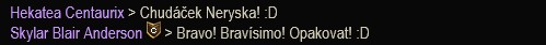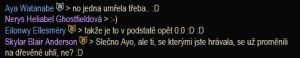 Nerys Heliabel Ghostfieldová: Zápas proti Lúzrům jsem si velmi užila, byl moc příjemný. Jednak svou atmosférou i fanoušky, kteří se na nás přišli podívat, jednak i proto, že v tomto týmu mám řadu kamarádů. Do zápasu jsem nastupovala s respektem, úrovně některých hráčů jsou fenomenální, zejména u střelců jsem čekala, že nás téměř nepustí k camrálu. Jak ale víme, zápas je vždycky dílem taktiky a zkušeností, ale také dílem náhody a štěstí. To tentokrát stálo možná trochu víc na naší straně. Jsem šťastná, že zrovna v ten den jsme vyhráli, protože to byl takový „narozeninový“ dárek pro naši kapitánku. Ale kdybychom bývali prohráli, nic to nemění na tom, že by mě prohra nijak moc nemrzela, Lúzřy jsou skvělý a sehraný tým. Ještě jednou tak děkuji jim i našim hráčům, že jsme si mohli užít vzájemné poměřování sil při tak příjemné atmosféře.