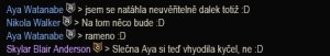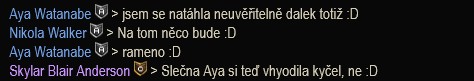 Aya Watanabe: Zápas proti Testrálům jsme hrály po zápase s Lúzry, kde jsme si vyzkoušely všechno možné i nemožné, všechny překážky, hru s jedním náhradníkem… no nemohlo nás nic překvapit. Pak ale Princezna zkusila létat bez koštěte, asi to chtěla zkusit na koberci. – směje se –