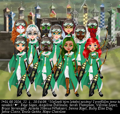 Chci taky poděkovat našim úžasným náhradníkům, které na koštěti sice tolik nevidíte, ale po celou dobu nám kryjí záda. Jsem na náš tým opět hrdá. – usměje se –