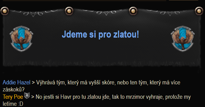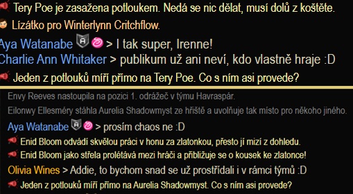 Měl jsem nehoráznou radost z toho, jak nám šly střílet góly a že náš brankář naopak tak dobře chytal. U odrážečů to bylo správné drama. Přišlo mi to hodně vyrovnané, a to i přesto, že mě zklamala taktika které se jela. Není moc příjemný v časovým presu vybírat jméno koho sestřelíme, jen abychom zjistili, že ten člověk honem slezl z koštěte a vystřídal se. Chápu, že to není proti pravidlům, ale hezký to rozhodně není. Ale prý se to dělá běžně, tak se na mě prosím nezlobte.
