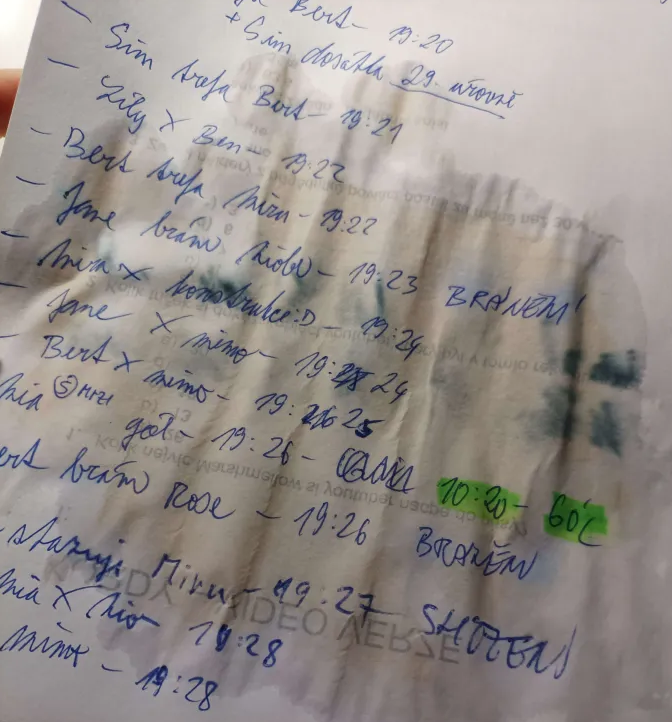 Na závěr se s vámi podělím o pracovní název první reportáže, říkám jí reportáž s příchutí černého čaje, neboť takto vypadaly úvodní tři papíry, které jsem během utkání sepsala. Co se tedy v reportáži ze zápasu Mrzimoru a Nebelvíru neobjevilo, bylo velice pravděpodobně rozmočeno horkým černým čajem, ze kterého jsem neměla ani kapku.