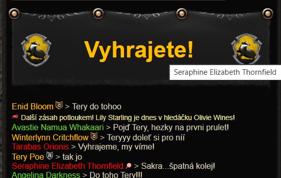 Vlastně mi nevadilo, že jsme nevyhráli. Zápas jsem si užila nejvíc z celé sezóny – díky všem hráčům ať už od nás z koleje, nebo z Havraspáru, ale nesmím zapomenout i na ostatní na tribunách.