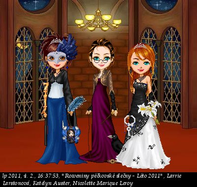 Nicolette Marique Leroy: Nešetříte mě, slečno! – semkne rty k sobě – Takového vzpomínání po mně chcete… – zasměje se – Mám pocit, že v současnosti je kolejka nahrazena Discordem, takže se přesunu do vzdálené minulosti, kdy to v kolejní místnosti opravdu žilo a člověk měl občas velkou potíž dopátrat se začátku konverzace. Některé dny na ní byly opravdu plodné. Pokud se člověk na nějakou dobu vzdálil, najít nit bylo téměř nemožné, ale na tyhle spamovací okamžiky, při nichž si vybavím i skupinku osob, které byly téměř vždy přítomné, vzpomínám ráda. A pak na první pořádaný večírek. Nepamatuji si úplně podrobnosti, ale mám pocit, že téma bylo podmořský svět a večírek jsem pořádala spolu s Thasou Monke Kemanovou. Nic konkrétnějšího si asi vybavit nedokážu. – omluvně se usměje –
