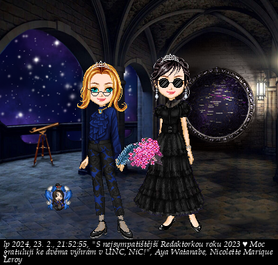 Ocenění, kterému jsem nemohla uvěřit. Když mi sovou po slavnosti dorazila sova s gratulací, nechápala jsem. Do té doby šlo UNC kolem mě obloukem, musím přiznat. Je až s podivem, jak jsem poslední měsíc roku 2022 sepsala asi po čtyřech letech „první“ článek a od té doby jsem psát nepřestala. – pousměje se – Pro mě je to forma odreagování, únik od mudlovských povinností… ehm, k jiným „povinnostem“. – zasměje se – A díky psaní se mi snad i daří udržovat přijatelnou formu vyjadřování, které by doma s dětmi možná zakrnělo. – uchechtne se – Prostě a jednoduše… asi mě to baví! – zazubí se –