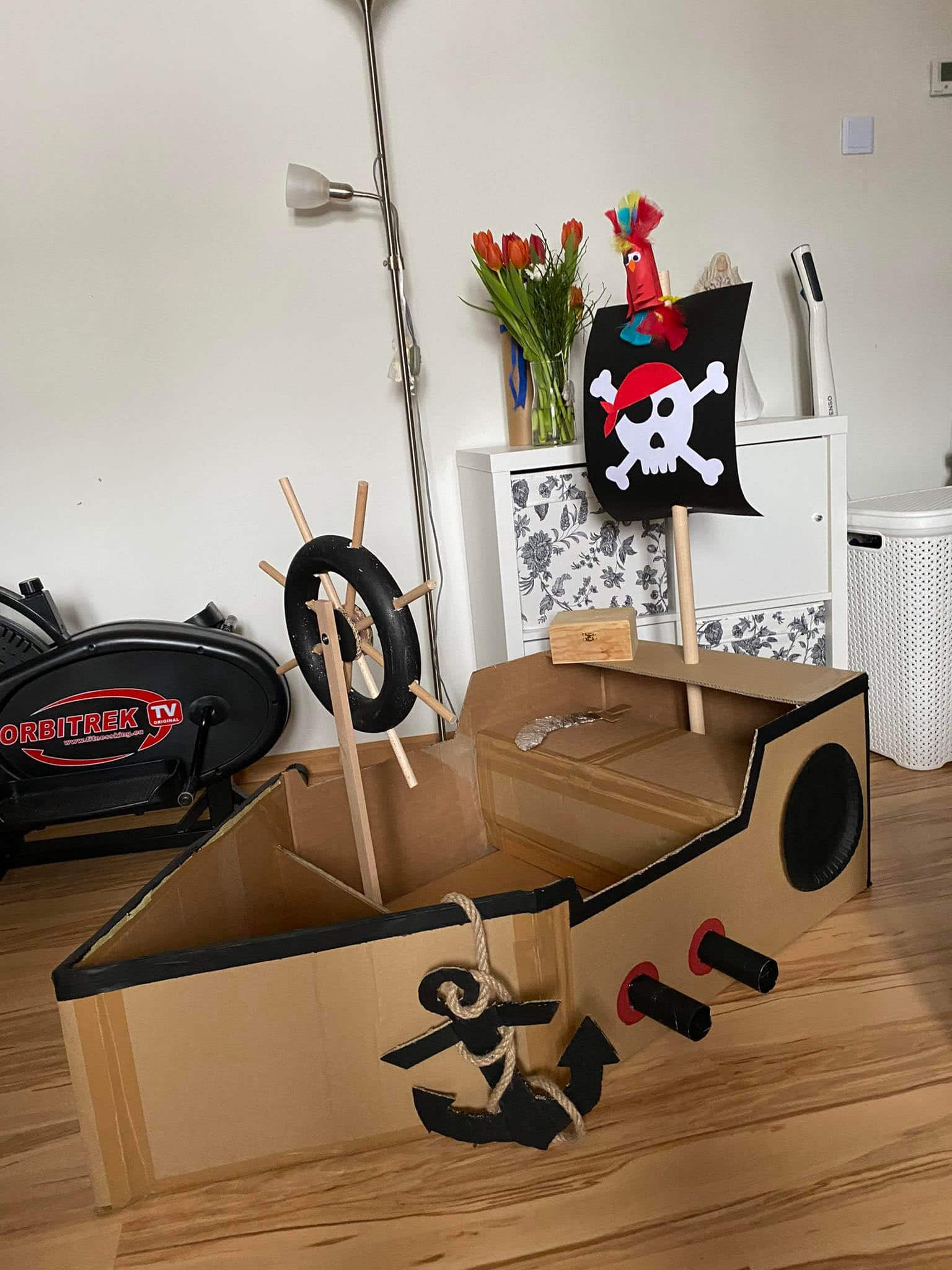 Pokud bych ale měla vybrat nějaký konkrétní výrobek, ze kterého jsme doma měli radost a toho tvoření už tam bylo víc, tak to bude asi kartonová loď do Kouzelnické tvořivosti. A třeba velikonoční relikvie à la jarní dekorace na dveře. A taky mě baví sezonní květinové košíky u našeho domu. – shrne a víc toho asi v paměti nevyloví –