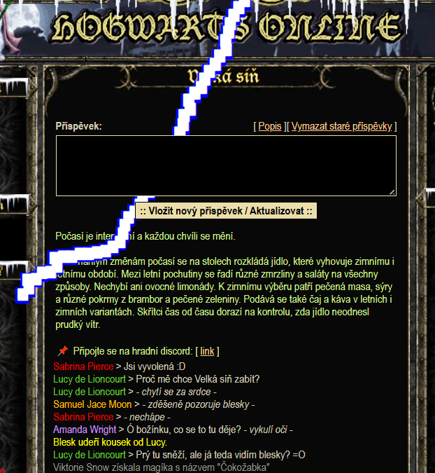 Čistý chaos a frustrace. Tak by se daly popsat pocity, které obyvatelé hradu zažívají během posledních dní. Jedna ze studentek situaci popsala jako neuvěřitelnou, nevídanou a doprovázenou pocity zmaru. A o čem že je řeč? Dne 17. 2. znenadání začalo ve Velké síni nejdříve padat listí a následně mrznout. Člověk si řekne – no dobře, je únor… ale mráz sílil. Následně se přidal i vítr a vločky. Když už by jeden šel shánět kulicha a froté deku, začalo svítit slunce tak silně, že bledší tváře, které se v zimě nemažou ochranným SPF, málem skončily na ošetřovně. V moment, kdy začalo pršet a blýskat se, mi málem vypadly oči z důlku a s ostatními kolegy jsme si vyměňovali nechápavé pohledy. Nejvíce mě u srdce bodl fakt, že se mi úplně rozmočily lívance a z horké čokolády slezla veškerá nadýchaná čepička šlehačky.