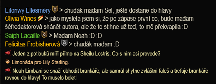 Lehký rozkaz, viďte? Jenomže vedení je někdy… trošku delší. No a nebo jsou ruce rychlejší, nebo matematika nematematikuje. Úplně vidím tu situaci, někdo na vás intenzivně řve „Pij!“, vy jste třeba na chytači, takže nevnímáte moc okolí, protože počítáte čísílka. A vzhledem k tomu, že jste poslušný hráč, prostě pijete. Že toxicitu přehlédnete, se stát může. Ale že přehlédnete, že jste na zemi? To je pak docela problémová situace. Samozřejmě. Chápu, že někteří mají léčivé lektvary rádi a chutnají jim, za plnohodnotnou večeři bych to ale nepovažovala a co si budeme, když jste na zemi, můžete si jít pro ten toxicky zelený lektvar na ošetřovnu. Nepotřebujete se posilňovat laudanem. Ale s těmito situacemi se dnes a denně na zápasech setkáváme.