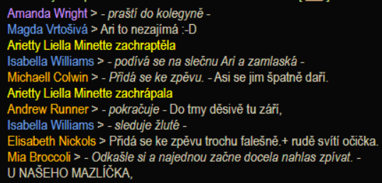 Aby ve světě ale byla rovnováha, štěstí se zákonitě musí podepsat na něčím neštěstí, a tou smolařkou byla inspektorka výuky Arietty Liella Minette. Před kolejním tréninkem trénovala totiž v dobré vůli na individuálním tréninku tak intenzivně, že ji kolejní trénink zanedlouho poslal nemilosrdně na lůžko. Samozřejmě jsme ji všichni spolutrénující říkali: „Už slez! To ti za to nestojí!“ Ale nedala si říct… Rozhodně ji v dalším tréninku a testování hranic nikdo nehecoval. Ehm.
