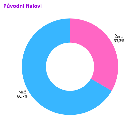 Poslední štace obsahující grafy míří k rozložení mužů a žen. A že mi taky připadá všechno zajímavý? Jo, tohle teda jo! Ukázalo se totiž, že ač je samozřejmě na hradě totální převaha žen, původní fialoví byli naopak většinově muži!