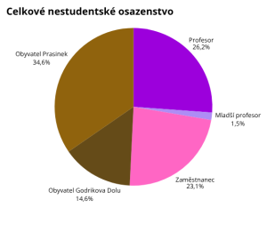 Už jen otázka, kolik jich vlastně je, nemá tak jednoduchou odpověď, jak by se na první pohled zdálo. Respektive neexistuje zrovna jednoduchá cesta, jak se k odpovědi dostat. V seznamu obyvatel jsem vyselektovala lidi s jiným statusem než Duch nebo Student a vyšlo mi krásné číslo: 130. Jenže číslo samo o sobě nestačí. Pojďme se podívat na první z mnoha grafů, kterými vás v tomto článku oblažím.