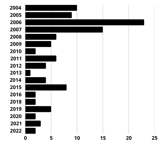 A jak jsou na tom s aktivitou? 33 aktivních Fialek se na hradě letos ještě neukázalo. 23 z nich se neukázalo ani loni, 19 ani předloni a takto bych mohla pokračovat dál a dál, takže vám ukážu další graf. Pardon.